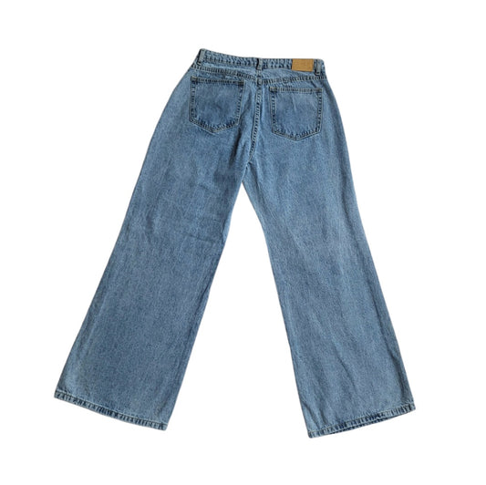 Jean mujer Dahla azul con rotos tiro medio wide leg talla 8