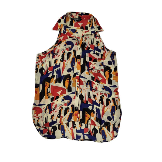 Blusa vintage mujer azul con morado estampado geométrico talla M